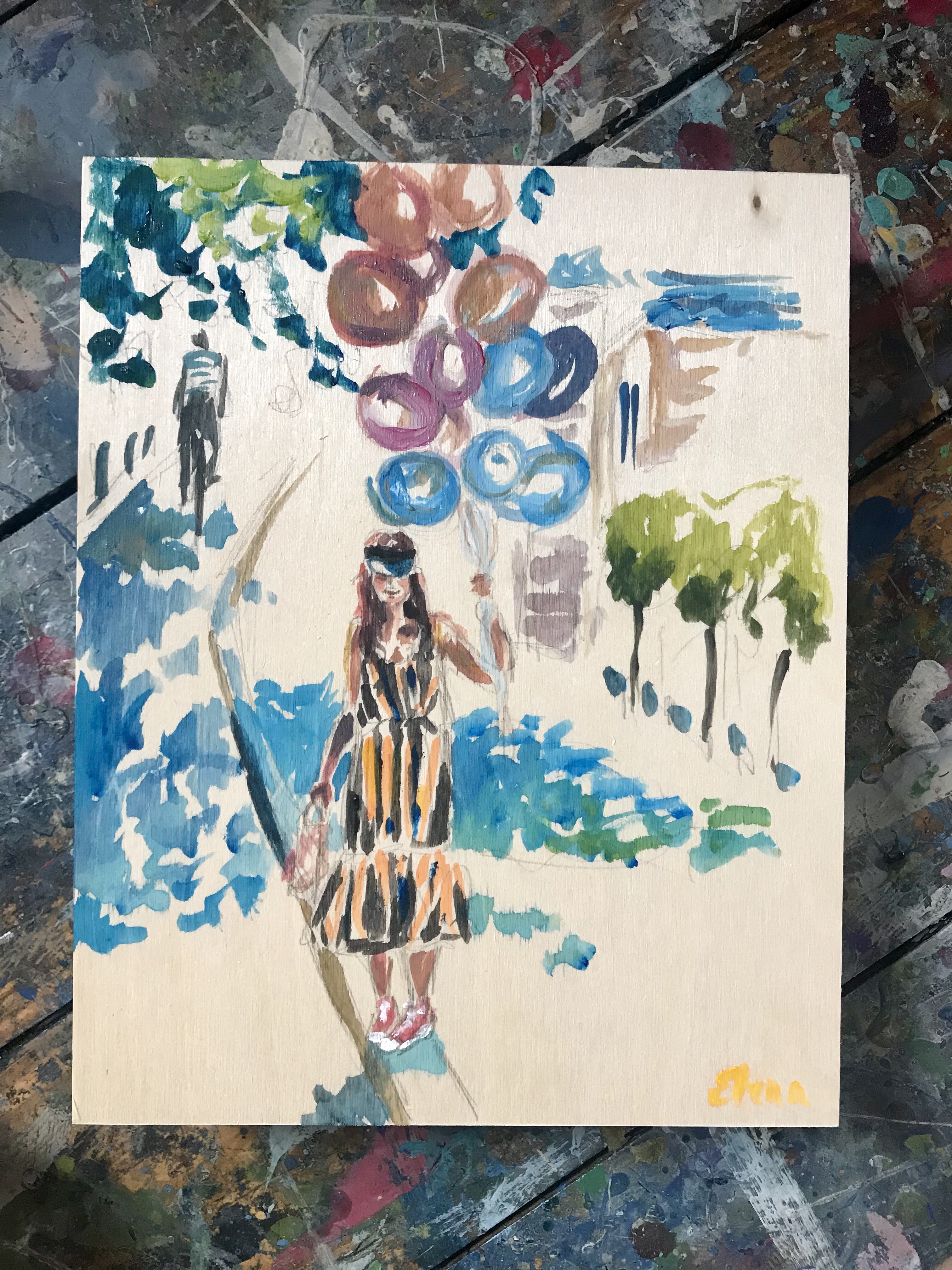 Today I painted this girl with balloons I saw on Instagram (@whereintheworldismiha). I wrote another 1,000 words on my ghost story. I had a very lovely collector come and pick up her painting from my show, and overall had a nice, relaxed kind of day. It was a good Sunday.