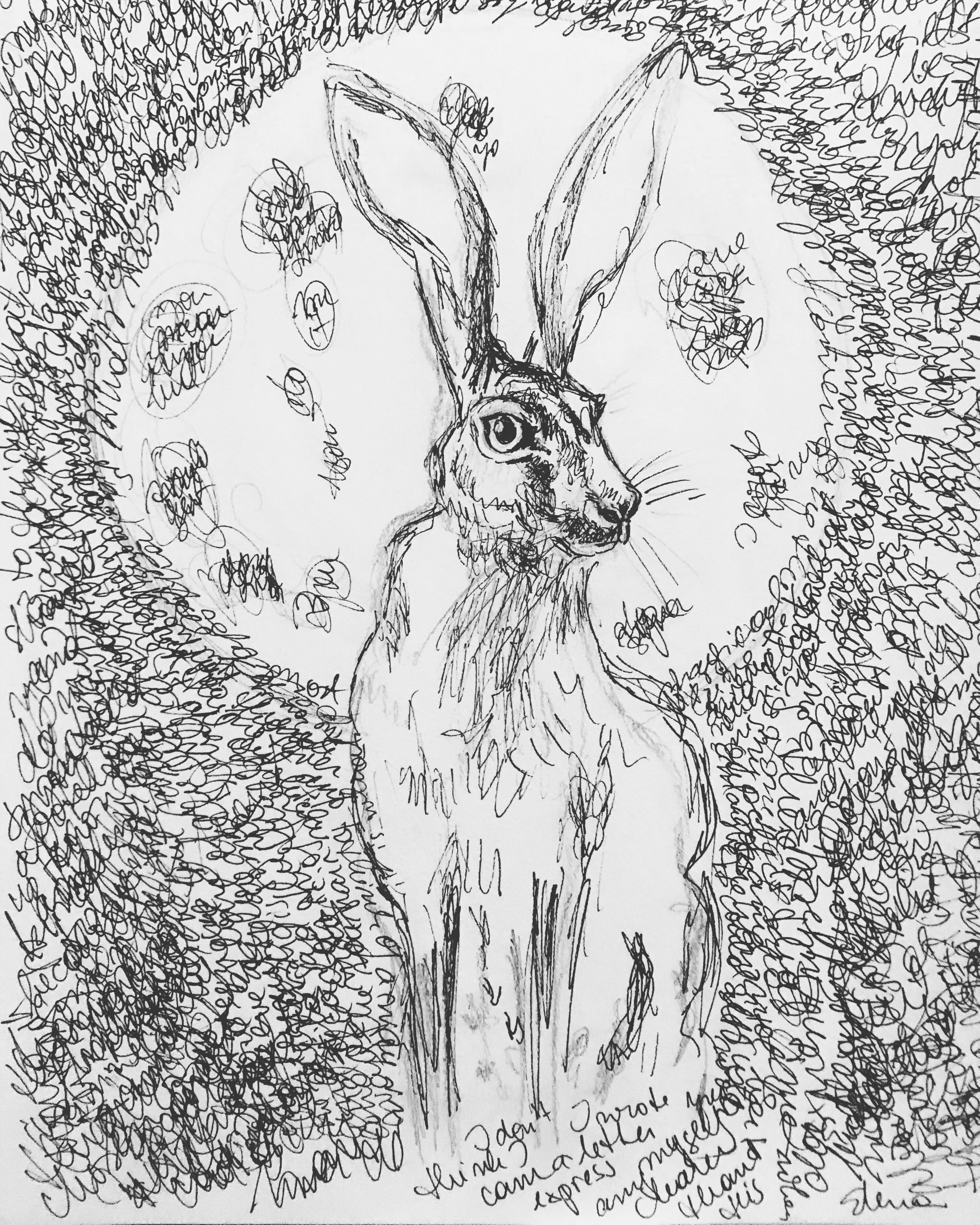 This started from a picture of a hare a friend Christena Stephens (check out her blog!) posted on Instagram. What a magical creature! I just had to draw it. And then around it I wrote a letter of sorts, a few things I needed to get off my chest. Many times when I write on my drawings I do it in such a way that the words are obscured and can’t be read. Ironically this is how I express myself most clearly.
