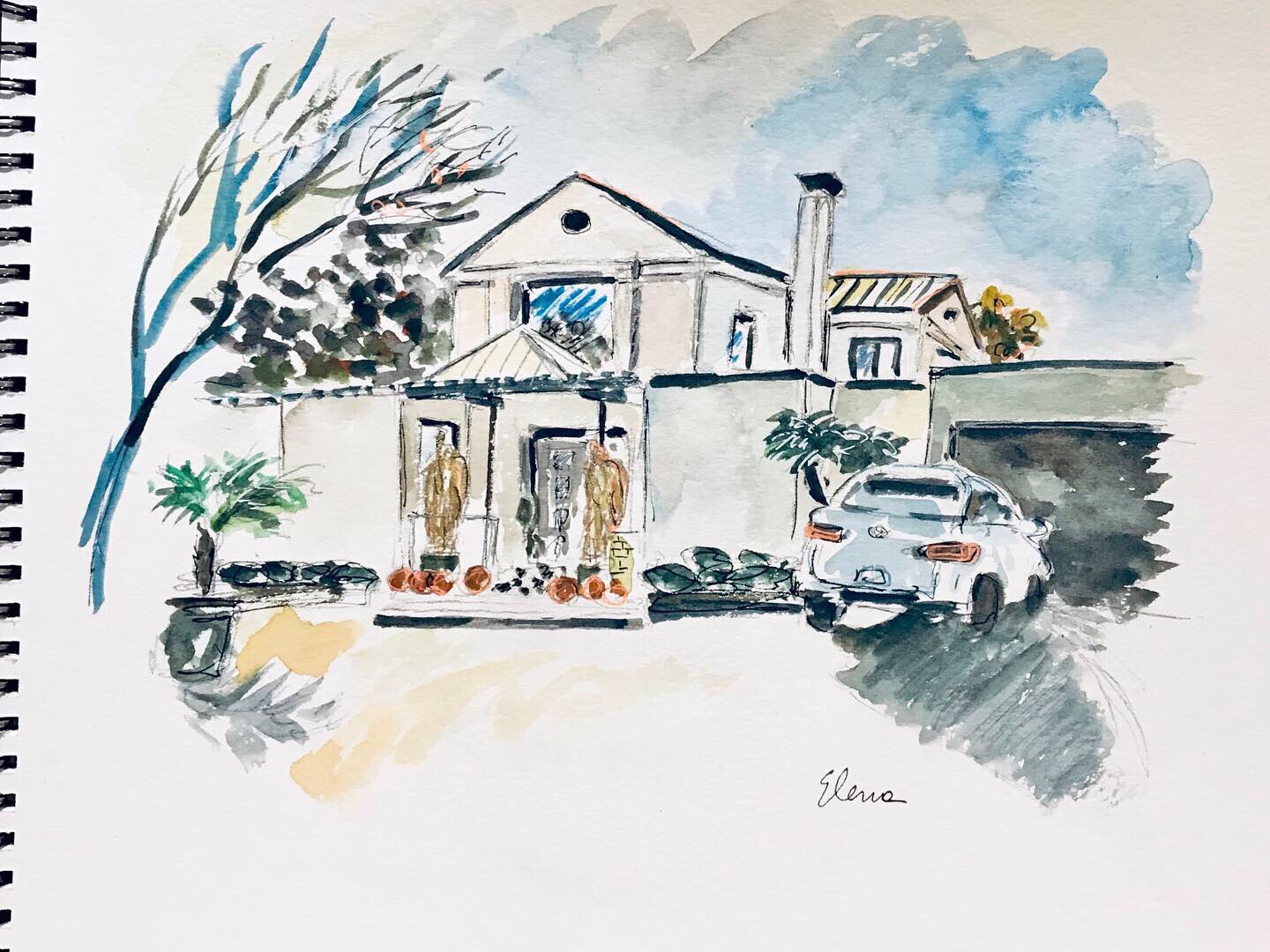 I had the honor of painting Dr. Farb’s beautiful home as part of my house portrait series, and I was absolutely thrilled that she loved it. After lunch, she gave me a tour of her exquisite art collection – which includes the most incredible hyper realistic sculpture of a goddess in the likeness of Dr. Farb sitting on top of a pink lotus flower – the Carolyn Farb DurgaMa by Carole Feuerman.