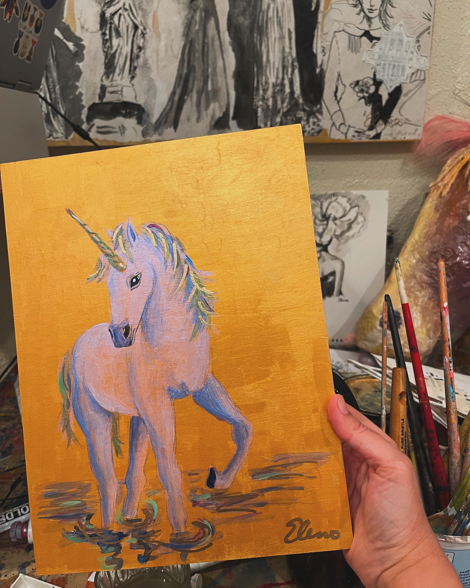 Today I painted another unicorn that shines in the light.