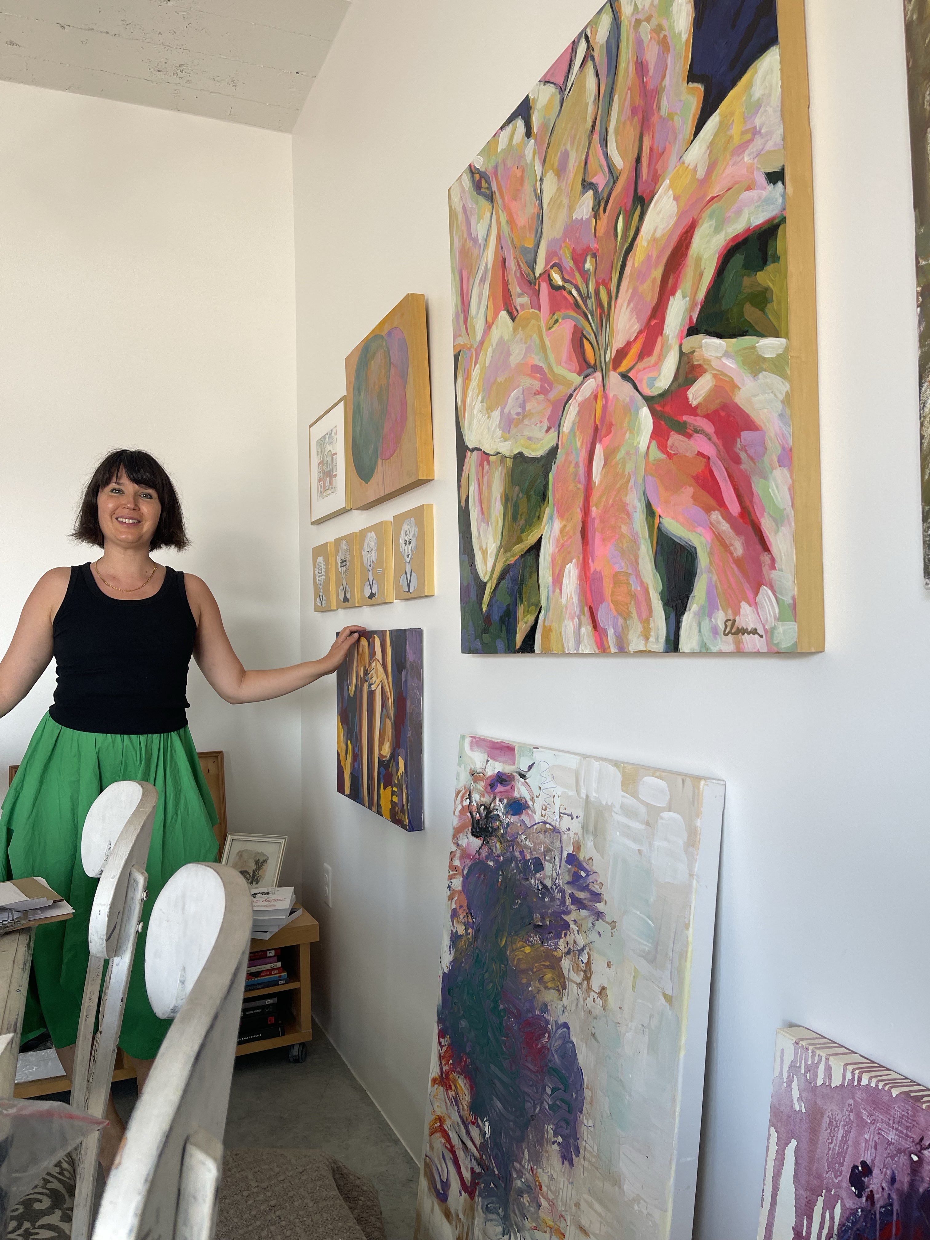 But it gets better. I feel like maybe I manifested something and Paula helped me manifest it. I basically wrote this book about a creative woman receiving the support she needs, and wrote it at a time when I was deeply questioning the things I myself do to present my own creative output to the world. For a while now, I have wanted a change, an opportunity to reach a wider audience with my art and do this in a more fun way. Running my own gallery space hasn’t been feeling exciting and inspiring lately. I have been feeling like I’m spending too much time and energy on pesky logistics when I should be doing what I love, which is make art and enjoy the process. So I was looking to branch out a bit, shake things up, put my art on walls that are not mine and show it to more people, get to socialize without hosting, get to experience new things, and ultimately be able to be more playful and free. Anyway, in the midst of all my soul searching about how to get back to having more fun in my art journey and in life in general (because I am the kind of not serious person that prioritizes fun, and I highly recommend this outlook), Paula took the leap to becoming a full-time artist (insert applause, congratulations, loud cheers, and an outpouring of support please!), moved her Winter Street studio to an even more generous space downstairs (Studio C-140 is one of those swanky studios with the little outdoor patios!) and invited me to come have an art pop up in her beautiful new space! How cool is that?