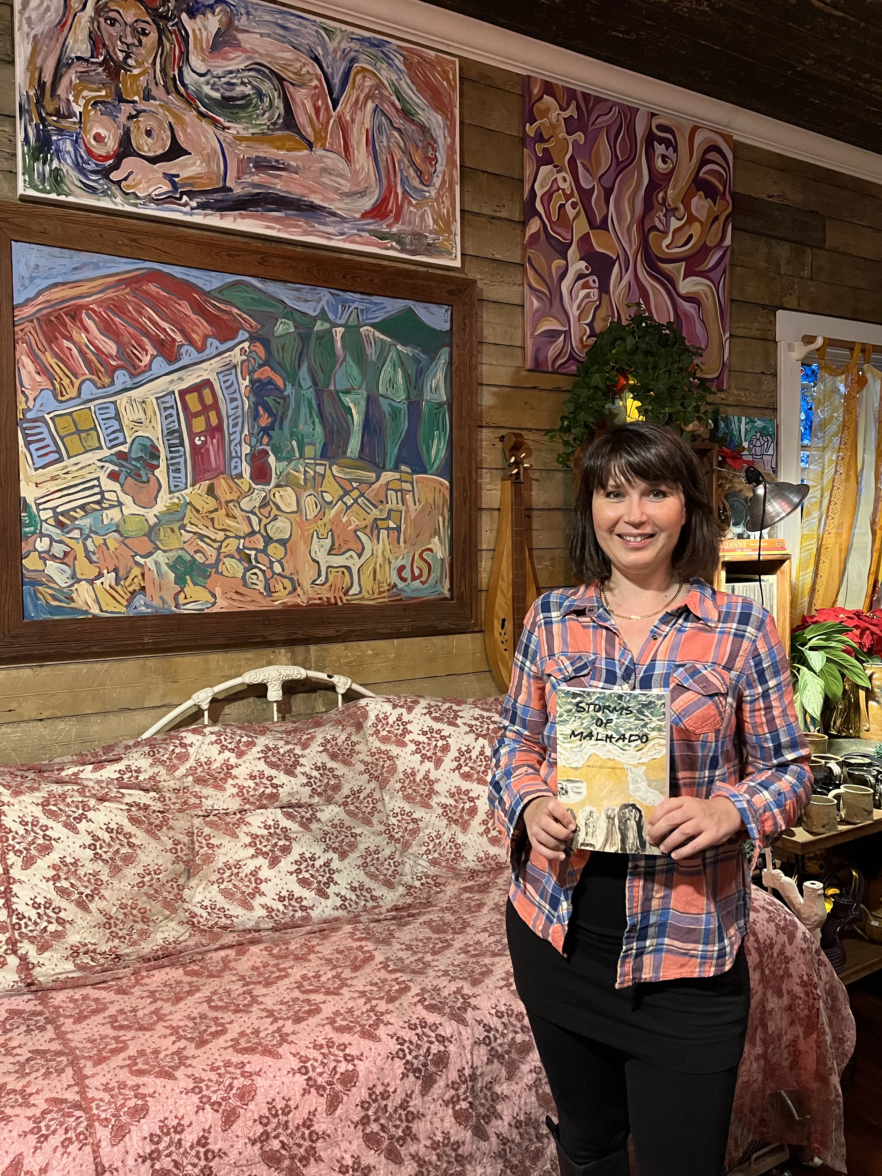 This morning, the dog and I woke up in our little condo in Houston. It was very cold outside, but nice and cozy inside. I went to HEB and stocked up on some goodies, then it was on to the Island for us. And tonight was a very magical night full of art, music, and laughter in my friend Catherine Stroud’s beautiful cottage. It was even more special, because our friend Kat was there too, in town from Virginia, selling pottery. People played music, and we sold lots of art, books, and pottery. Then I went home to walk my old dog and finally curl up in bed with her and get some rest because more adventures await tomorrow!