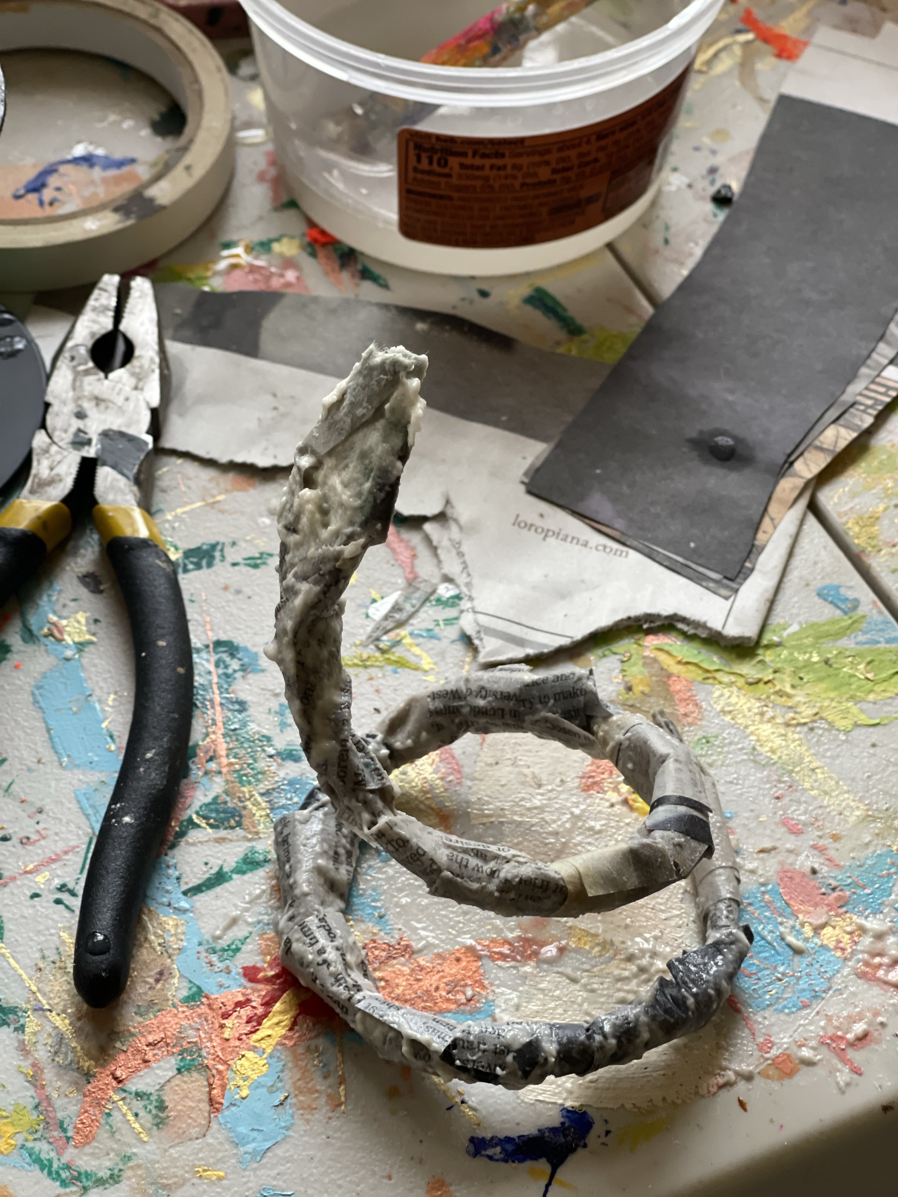 Also, I have started making the paper maché snakes that will go into this year’s Mardi Gras Surprise Boxes. My goal for today was to make a snake, but I ended up making 3. Only 7 more to go, but who’s counting? Of course, now they have to dry so I can paint and glaze them. Once they’re shiny and colorful, I think they’ll be cute!