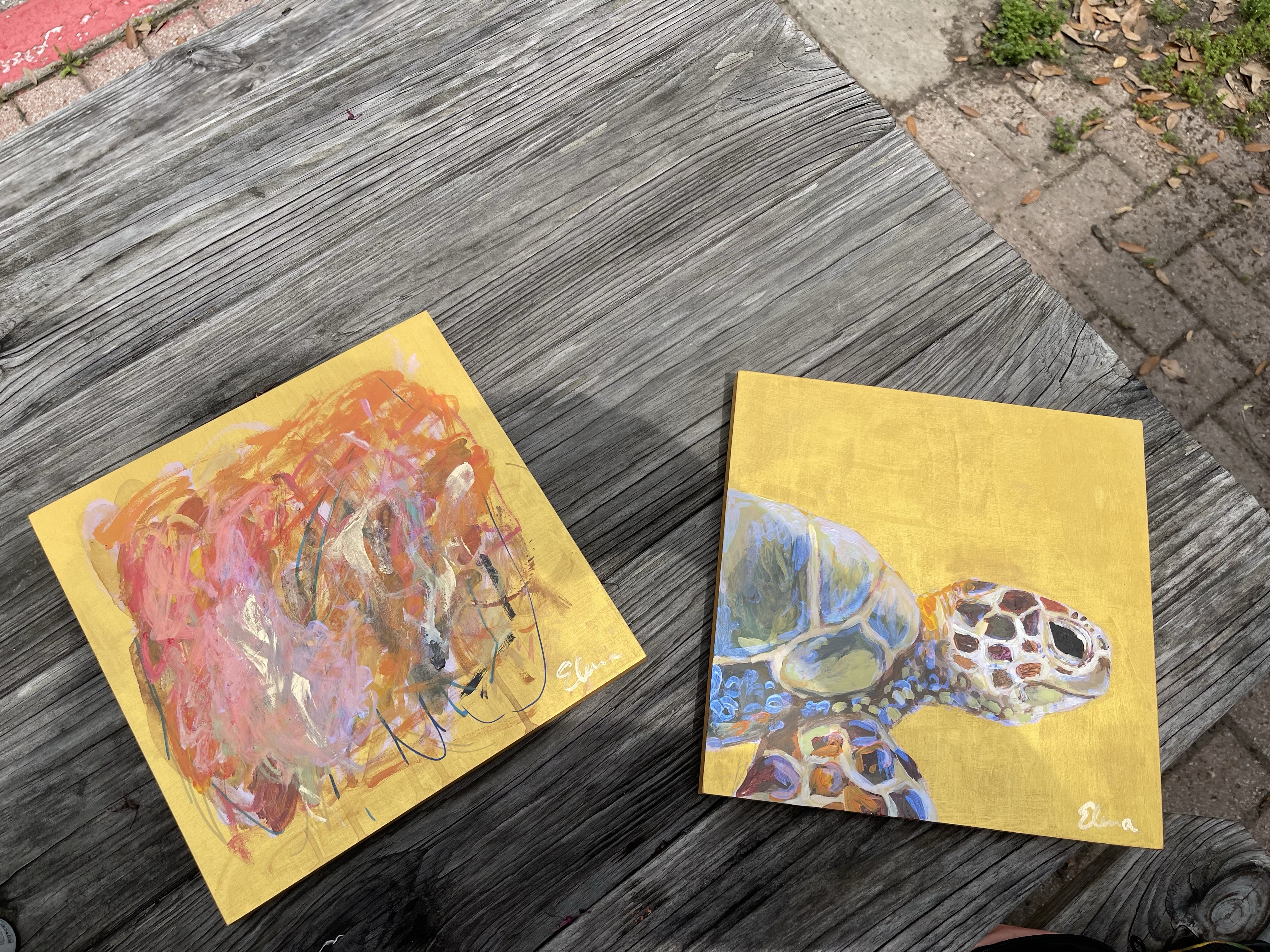 Sitting in the gallery for my friend Karla at Mock & More on Postoffice today, and took the opportunity to paint outside before the sun got too hot. I made a turtle I really love, which I plan to bring to an event at John’s this weekend. I plan on unveiling a whole concept, something I’ve been cooking up for a while.
