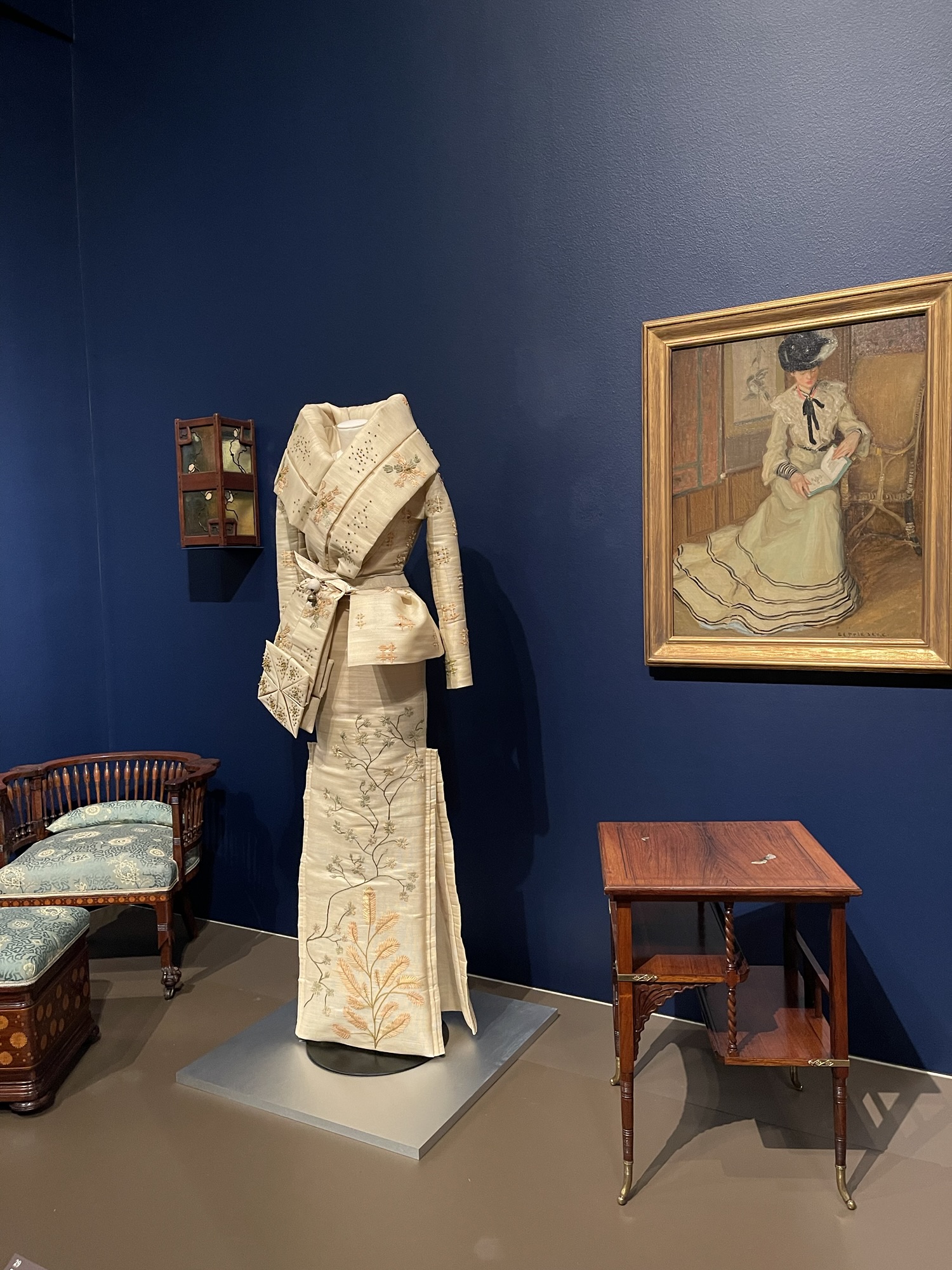 Today I wrote in the morning, then my friend and I went to see the Louvre Couture exhibit at the Museum of Fine Arts. It was a perfect pairing of activities, as my new manuscript is about someone who studied fashion and who sells vintage clothing. There is in particular a kimono in the story that plays a very important role. Anyway, the show was beautiful and I made my friend laugh with my reaction to the ghastly pigeon purse. Though I thought the museum found a clever way to display it.